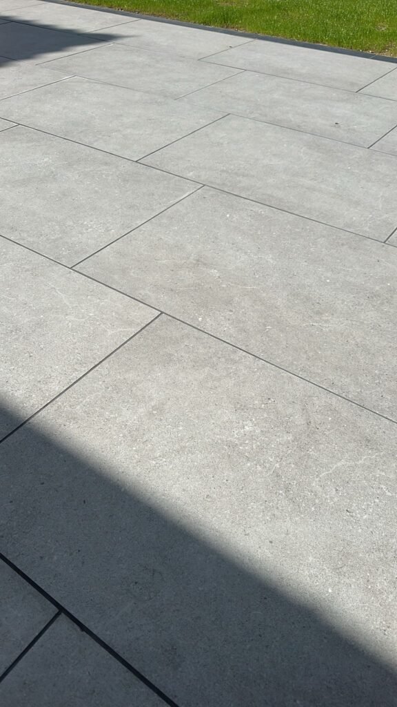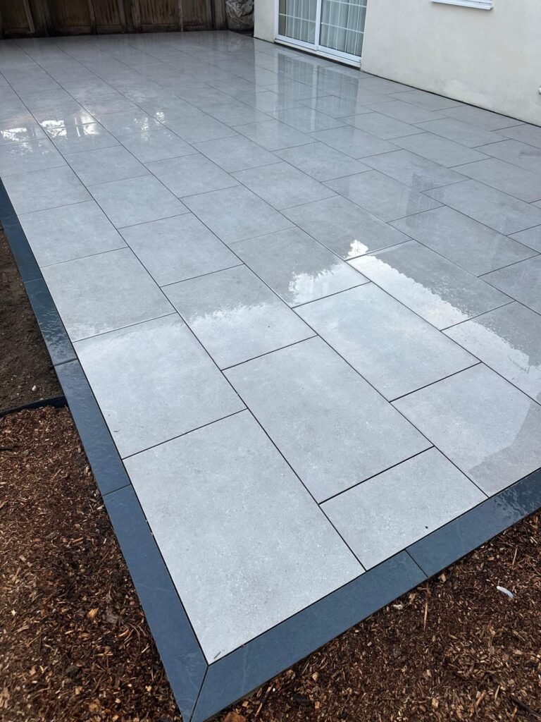 To elevate the design further, the TL13 Minster Black was introduced as a feature border. Its fine textured slate appearance provides a striking contrast against the cool grey tones of the Antibes. The result is a beautifully defined layout that exudes both precision and style.